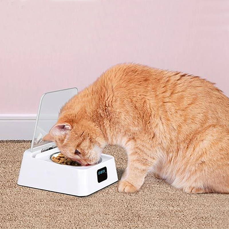 White smart stainless steel timer pet feeder