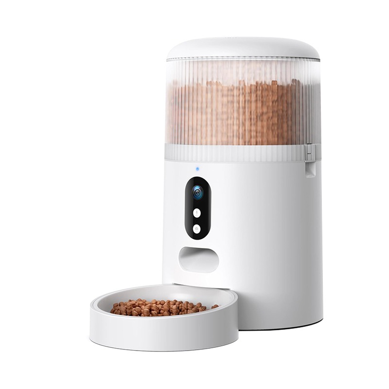White 2L automatic pet feeder with camera