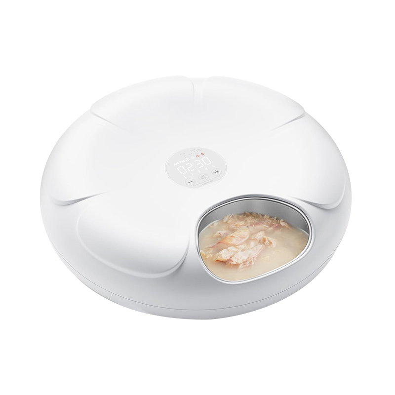 Features Knob-controlled food delivery: Mechanical knob control, easy to set food delivery time, no complicated programming required, suitable for the elderly or first-time users. Ice bag preservation design: Built-in ice bag slot, used with frozen ice bags, effectively prolongs the freshness of wet food, especially suitable for hot weather. Stainless…
