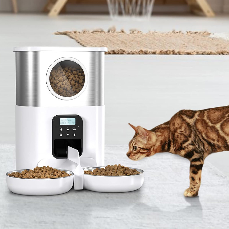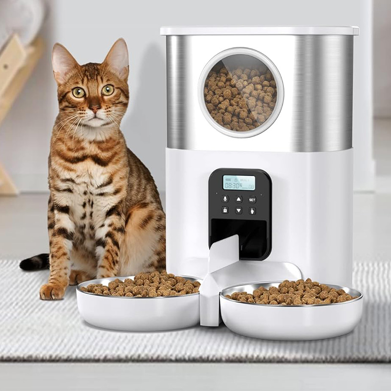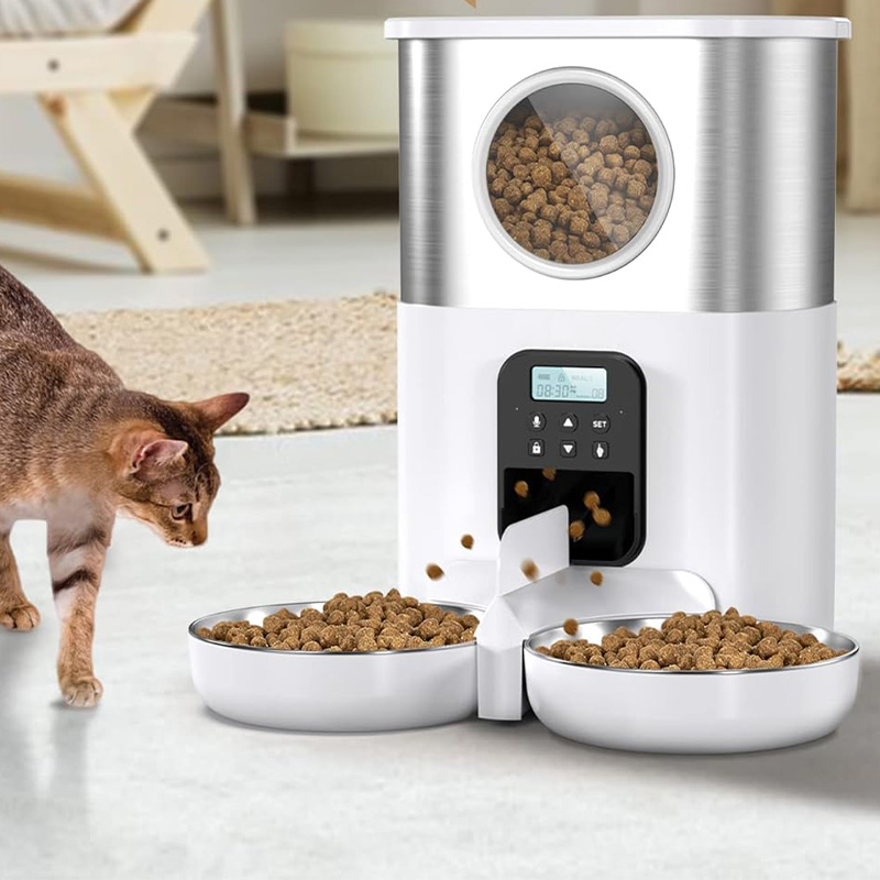 Double bowl automatic timer pet feeder